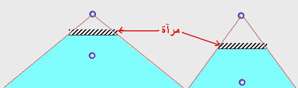 نرسم الصورة الافتراضية للعين داخل المرآة بحث تكون العين وصورتها الافتراضية متناظرتان بالنسبة لمستوي المرآة.