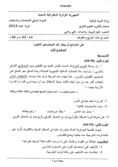 موضوع التاريخ و الجغرافيا بكالوريا 2013 للشعب العلمية موضوع التاريخ و الجغرافيا بكالوريا 2013 للشعب العلمية موضوع التاريخ و الجغرافيا بكالوريا 2013 للشعب العلمية موضوع التاريخ و الجغرافيا بكالوريا 2013 للشعب العلمية جاري رفع البقية